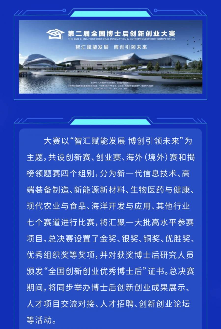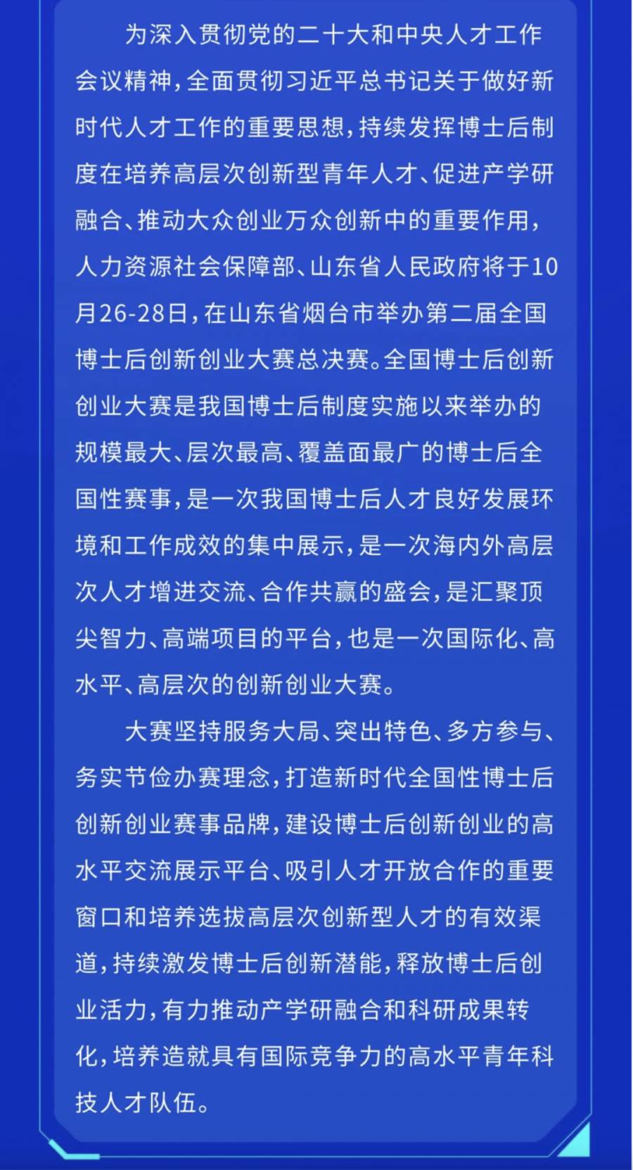 第二届全国博士后创新创业大赛总决赛将于10月26日在山东烟台开幕