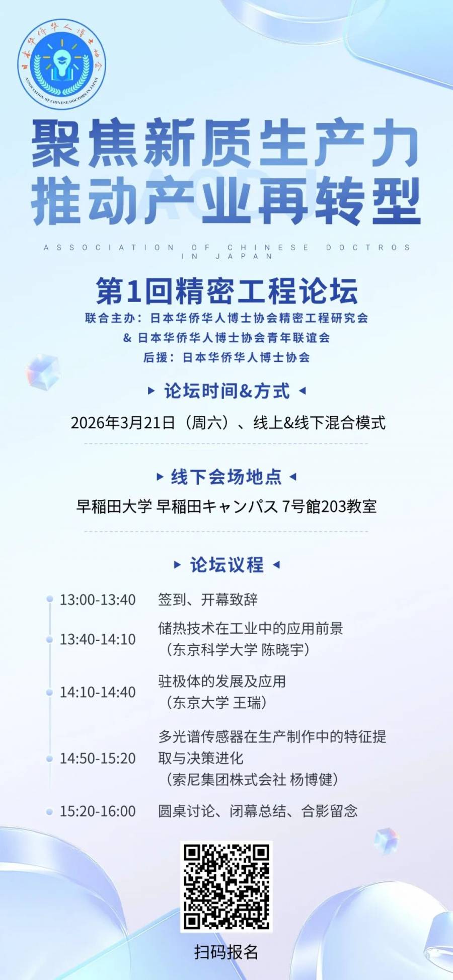 主办单位:日本华侨华人博士协会精密工程研究会、日本华侨华人博士协会青年联谊会