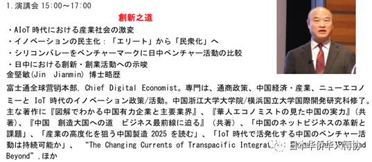金坚敏博士围绕“创新之道”的主题,从“AIoT时代下产业社会的激变”,“创新的民主化--由尖端人才到普通民众”,“中日风投活动的比较”,“中日创新创业活动的启示”等四个方面介绍和分析了日美中三国的创新情况并指出各国特点。