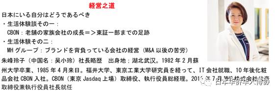 朱峰玲子社长围绕“经营之道”的主题,介绍了自己在日多年的工作经历和经营管理经历。