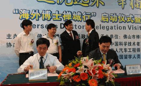 4 月29 日至30 日,以辛平为团长、干力行为秘书长、各社团的主要负责人陈洪源、赵新为、赵凤济、刘玉劲、栾斌、巨东英和韩冰等为代表的近60 名留日博士组成的留日博士代表团奔赴广东省佛山市与佛山市禅城区政府共同组织了“海外博士禅城行”活动。留日博士代表团由在日华人主要社团——全日本中国人博士协会、中国留日同学总会、留日博士专家团、在日华人汽车工程师协会、在日中国科技者联盟、在日中国学者材料学会和全日本中国留学人员友好联谊会推荐的日本华人专家和部分在学博士生组成。