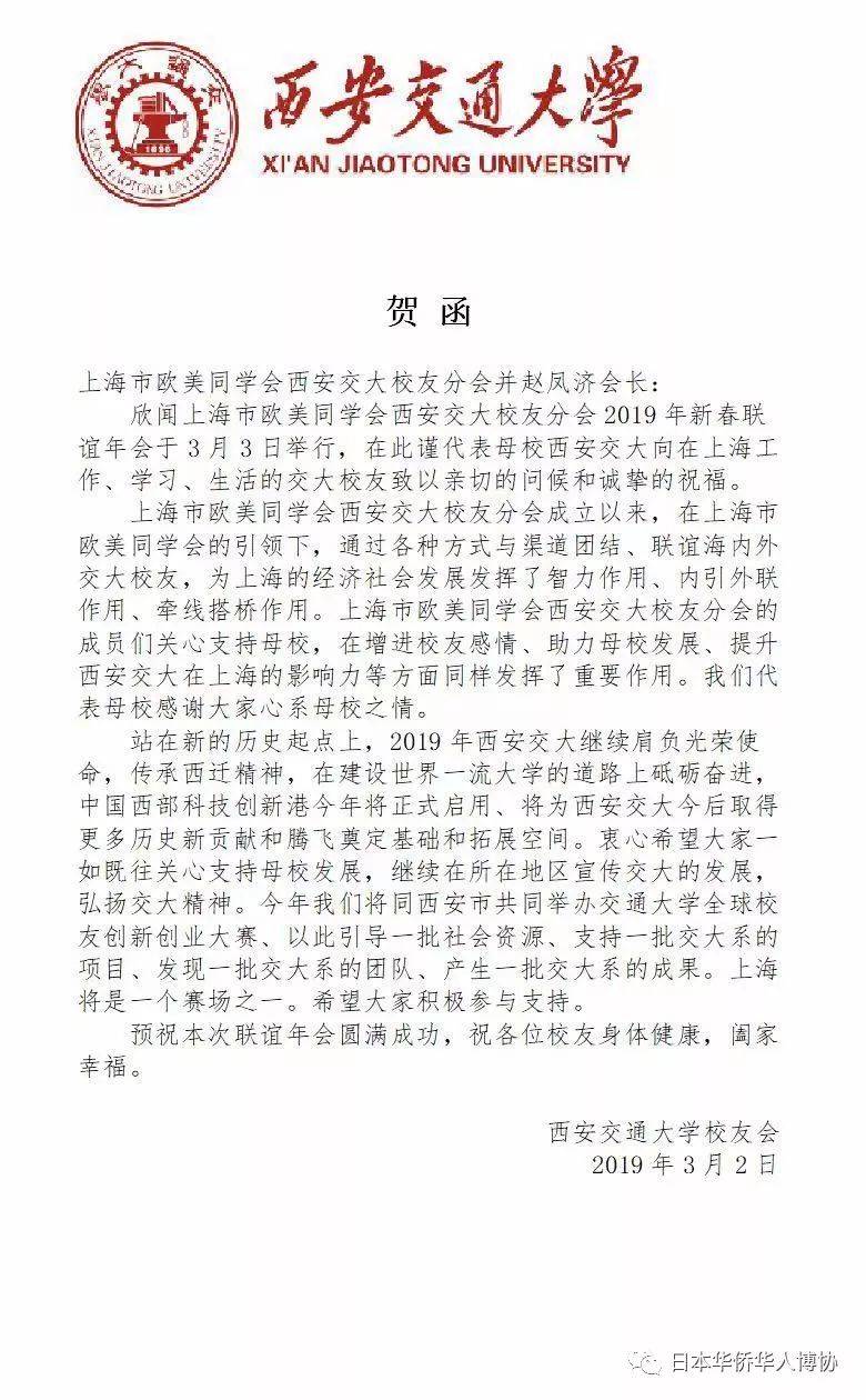 西安交大联络部主任周刚因公务未能到会,他代表母校西安交通大学校友会向本次会议发来的贺函,在会议上做了隆重的宣读。