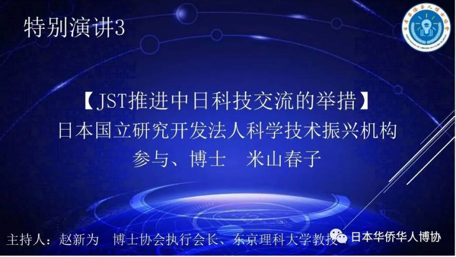 嘉宾简介:米山春子博士,国立研究开发法人科学技术振兴机构(JST)参与,日本御茶水女子大学理学博士,担任日本癌研究会研究及理化学研究所研究员,自2008年起经历JST研究员、处长、部长、中心副主任等职,现任JST参与(副理事级别)。
