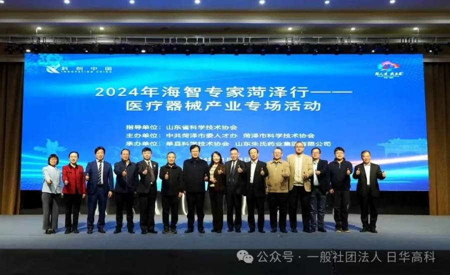 11月23日至24日,2024年中国科协海智专家服务团菏泽行——医疗器械产业专场活动在山东省菏泽市单县圆满举行。本次活动在山东省科协的精心指导下,由中共菏泽市委人才工作办公室、菏泽市科学技术协会携手主办,单县科学技术协会与山东朱氏药业集团有限公司共同承办。活动汇聚了来自各方的专家、学者、企业家代表共计200余名。山东省科协人才联络部一级调研员李峰,菏泽市科协主席樊玉占,菏泽市招才引智服务中心主任孙飞,以及中国科协海智专家孙铭旭、赵凤济、邱波、思帆,日本华侨华人博士协会常务会长储仁才、理事黄礼丰、马骥、金小刚等出席了活动。