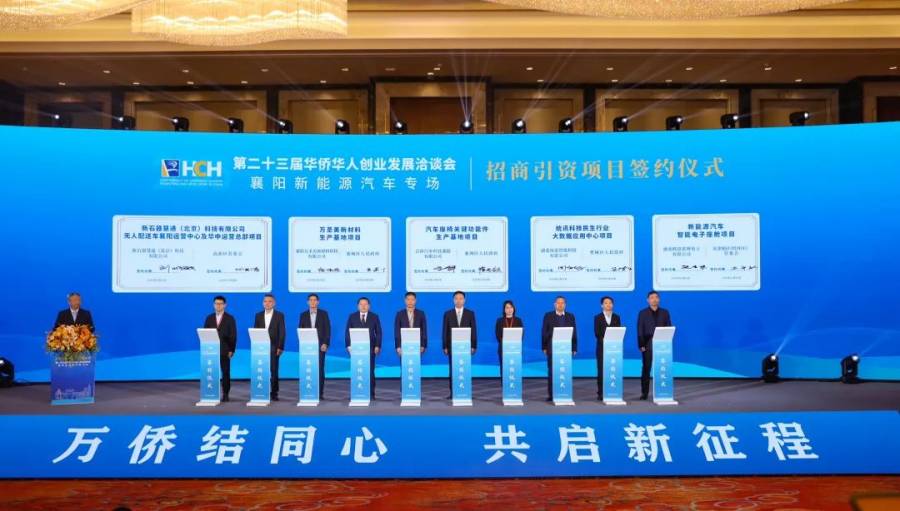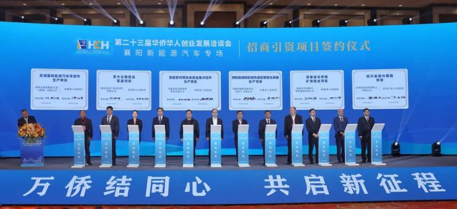 活动现场,襄阳籍侨胞、英国中华总商会副主席、英国湖北商会会长宋安娜,日本华侨华人博士协会原会长、名誉会长葛宗涛,捷克德昂新能源公司董事长常键,上海嘉定氢能港总经理、上海安亭氢能科技集团有限公司董事长邱鹏作分享交流;11个招商引资项目举行签约仪式。