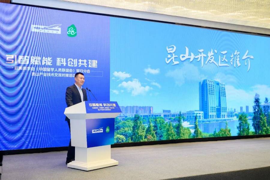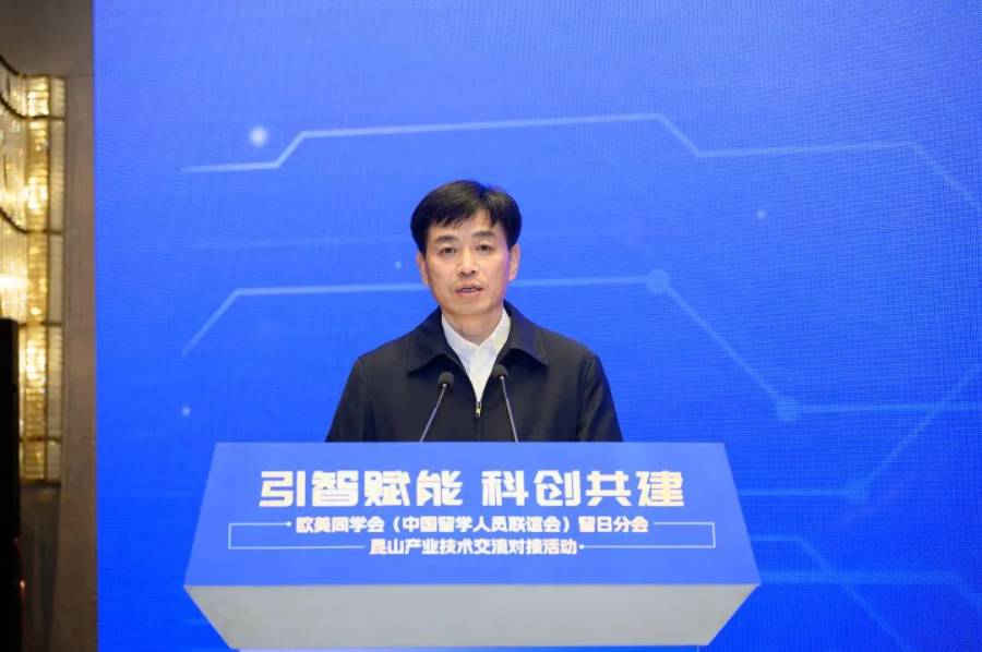 丁成明向长期以来关心支持昆山经济社会发展的广大留学人员表示感谢。他说,昆山是一座创新动能强劲的现代科创之城,也是一座文化底蕴深厚的江南魅力之城。近年来,昆山全力以赴在中国式现代化新征程中勇当探索者、引领者,成为全国首个地区生产总值超5000亿元的县级市,综合实力连续21年位居全国百强县市首位。热忱期盼广大留学人员发挥优势作用,把昆山的营商环境、产业机遇、人才政策传递给更多的企业家会员,吸引更多顶尖技术团队、优质项目、优秀人才来昆山落地扎根。