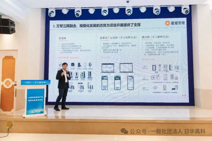 在主旨报告环节,中国科协海智专家、国家汽车芯片质量检验检测中心首席技术官金星先生和星星充电科技发展中心副总经理贾刚分别为与会嘉宾分享了《功能性平台助力汽车芯片国产化》《常州市分散式V2G车网互动试点项目的实践与思考》。