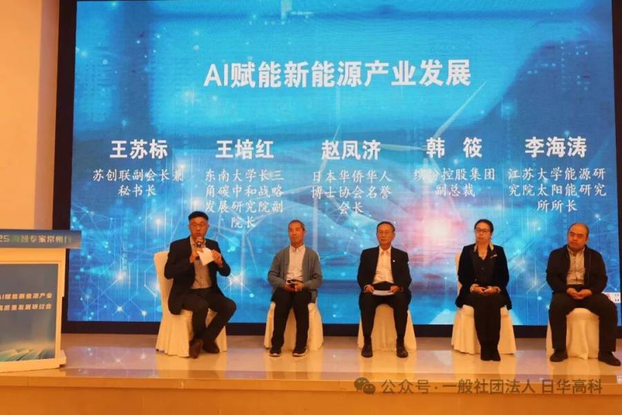 在圆桌访谈环节,针对“AI赋能新能源产业发展”这一主题,赵凤济会长,王培红教授、李海涛教授、缤纷控股集团副总裁韩筱以及王苏标秘书长,分别从各自专业领域和工作经历、资源对接、技术转移等角度分享了对这一话题的看法。